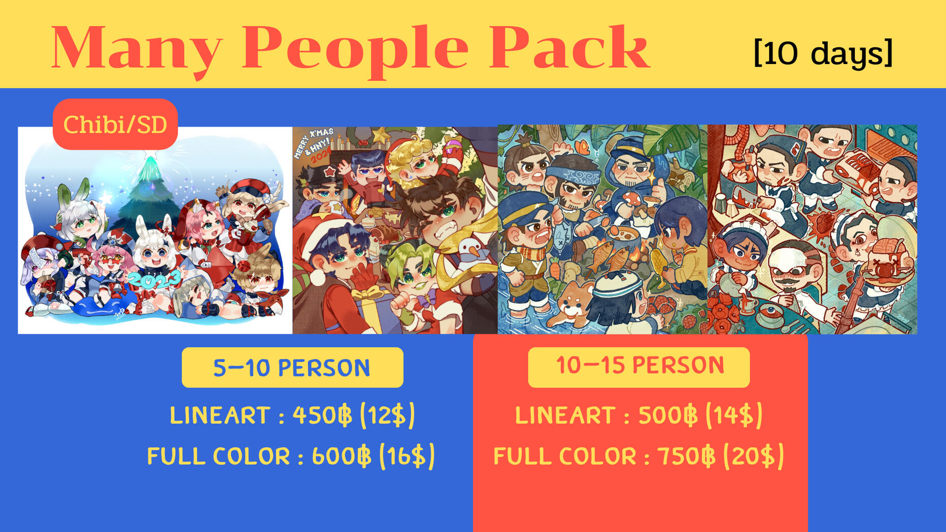 Full color | 400฿ (10$) | 450฿ (12$) | 500฿ (14$) |